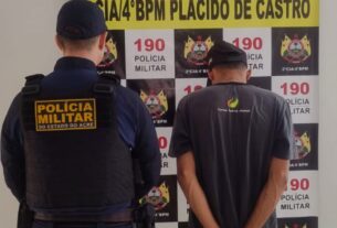 Um homem apontado como participante de um roubo ocorrido no dia 13 de março de 2026 no município de Acrelândia, foi preso pela Polícia Militar do Acre durante uma abordagem de rotina no interior do Acre. De acordo com informações da Polícia Militar, após o crime, vários suspeitos foram detidos ainda no município de Acrelândia. […]