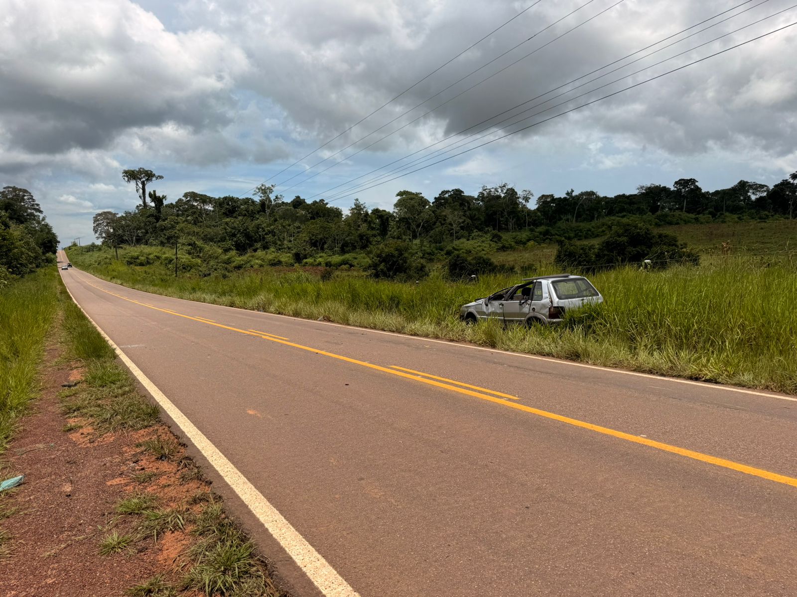 Um Fiat Uno de cor prata capotou na manhã deste sábado (14) na rodovia AC-475, nas proximidades de um frigorífico, no município de Acrelândia, após o motorista perder o controle da direção.